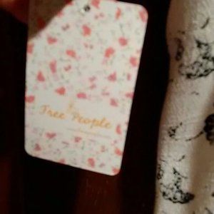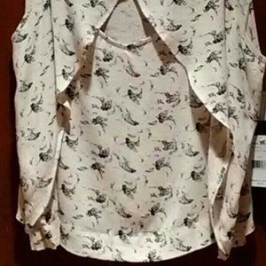 This is a cream and black pattern top with a peek a boo criss-cross front.