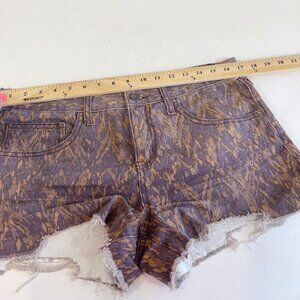 Free People Cutoff Frayed Shorts Size 29 Womens Purple Printed Denim Mid Rise
