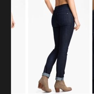 An EXCEPTIONAL PAIR! Remind me of Seven for all Mankind DARK WASH. Fit is more wearable than other skinnies; Ultra flattering.