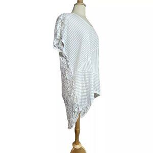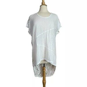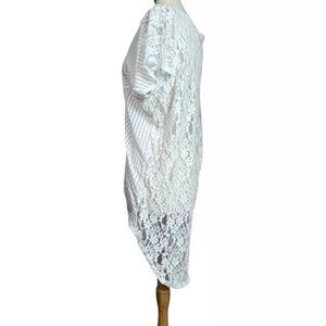 Free People DAYDREAM Tunic Top L High Low White Lace Sheer Boho Beach