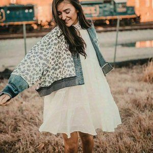 Free People DITSY DENIM Quilted FLORAL Jacket M L