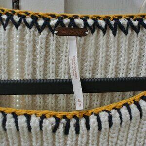 So cool in a colorful crochet, this forever classic pullover is featured in a slouchy, cropped fit with square neckline, exaggerated sleeves, and sweet embroidery at sleeves for an added special touch.