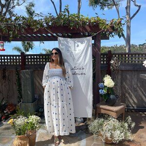 Size Medium. Worn once for my baby shower and sold out on FP website. Loved this dress so much!