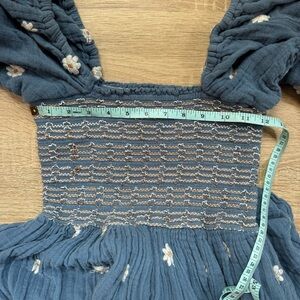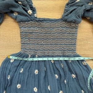 Free People Dahlia Embroidered Maxi Dress Puff Sleeve Blue