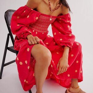 Free People Dahlia Embroidered Maxi Dress Smocked Watermelon Size Small NWOT