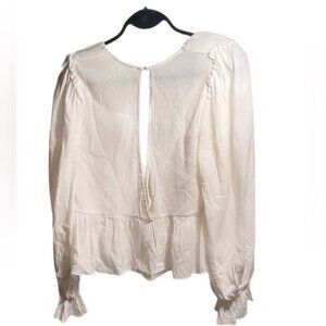 Free People Daia Top French Vanilla open back crinkle long sleeve ruffle top XS