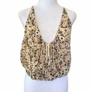 Free People Daisy Babe Crop Tank in an floral print with inner ivory lining, cropped & flowy oversized fit, drawstring scoop neckline, adjustable back/halter tie with low back, and an elastic waistline