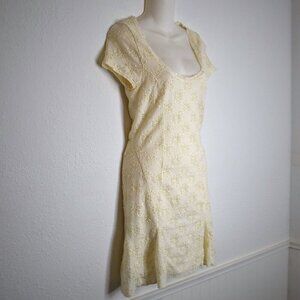 Free People Daisy Lace Dress Sz M Mini Floral Stretchy Neutral Cottagecore Boho