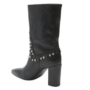 Textured studs amplify the Western appeal of a block-heel boot shaped from smooth leather.