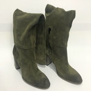 Free People Dakota Tall Boot Over The Knee Slouch Moss Green Suede EU 39 US 9