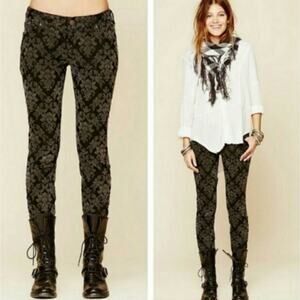 Free People Damask Brocade Jacquard Goth Skinny Jeans