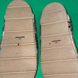 - Size 37; measures approx. 9.5" from the inside toe to the back of the inside heel. I would say a 7/7.5