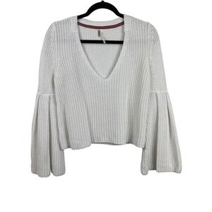 Free People Damsel Belle Sleeve Cropped Crochet Knit Sweater Size XS