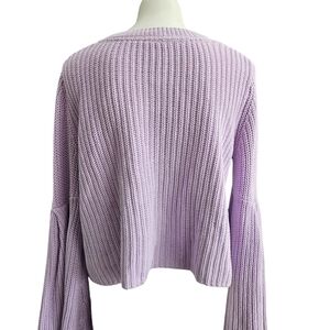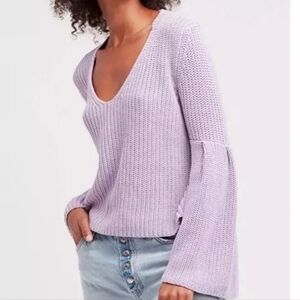 Free People Damsel Chunky Knit Bell Sleeve Sweater Boho Pastel Purple Sz S