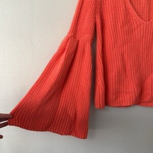 Free People Damsel Knit Bell Sleeve Sweater 100% cotton Size small Coral Good condition