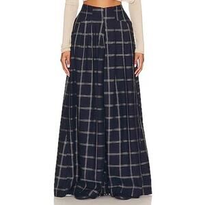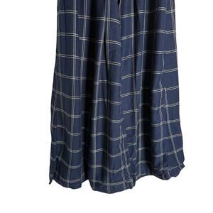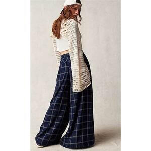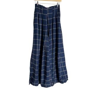 Free People Dance At Dusk Wide Leg Windowpane Plaid Pants Navy Blue XS