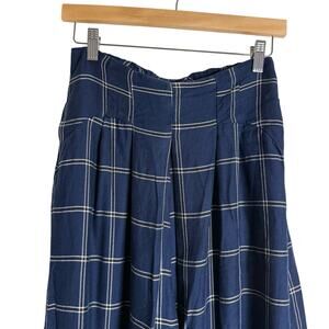 Free People Dance At Dusk Wide Leg Windowpane Plaid High Rise Pants Navy Blue XS