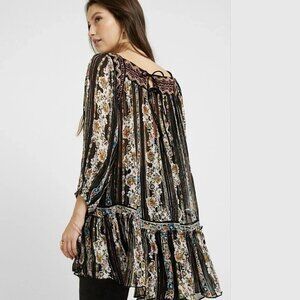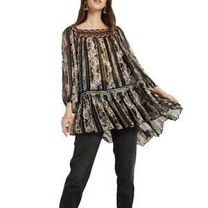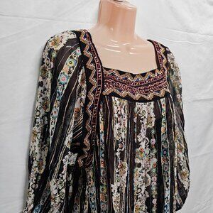 Free People Dance Magic Boho Sheer Top Tunic Blouse Women Size S Glittered