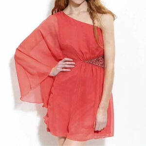 FREE PEOPLE "Dancing In The Moonlight" One Shoulder Beaded Chiffon Mini Dress