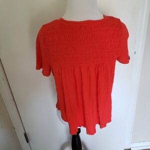 Free People Dani Orange Tee. Size tag missing so see measurments. Fits like a small. My mannequin is a XS. Preowned in good used condition.
