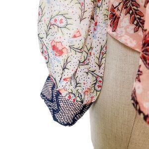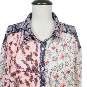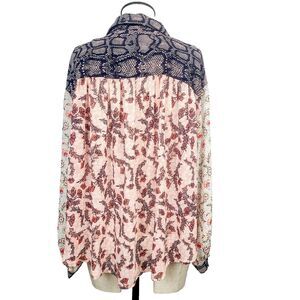 Free People Dani Top M Multicolor Mixed Media Floral Paisley Button-Front Blouse