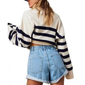 Free People Danni High Rise Cuff Hem Boho Denim Shorts Light Wash Size Large NWT