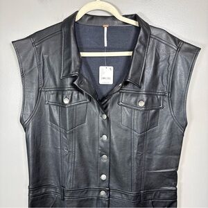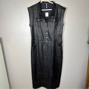 Free People Danni Vegan Leather Midi Dress Size XL Black Pockets NWT!