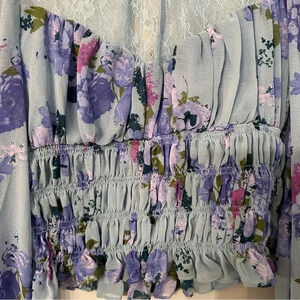 Free People Daphne Blouse Silver Blue Combo Size LG NWT