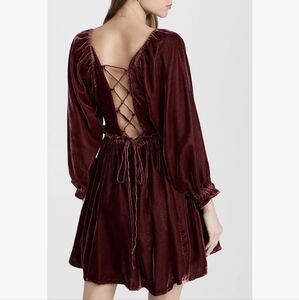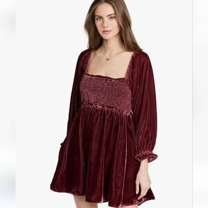 Free People Daphne Velvet Sleeve Mini Dress Roan Rouge Red Women's Small