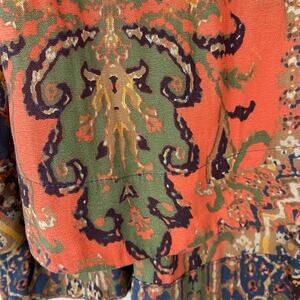 Free People Darcey Tank Top Magic Carpet Orange Printed Blouse V-neck Size Small