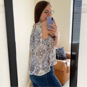 I just love this flowy and delicate boho print hi-lo sleeveless FP top! It features a v neckline, soft lining, and swing profile. Great condition with no notable flaws.