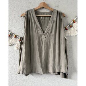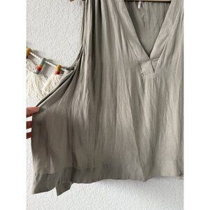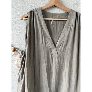 Free People Darcy Pleated Lightweight Line Cami Top Gray Boho Cottage Neutral S