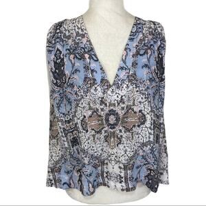 Free People Darcy Swing Tank Oversize blue Bohemian Pattern V-Neck hi low top