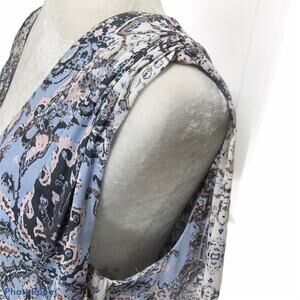 Free People Darcy v-neck swing tank top. Size xs but oversized fit would work for small as well. Excellent condition, no notable flaws. Printed blue pink & off white washable polyester chiffon with lining, Shirred shoulders, oversized Flowy boxy fit, High low hem. Perfect free spirited summer festival top.