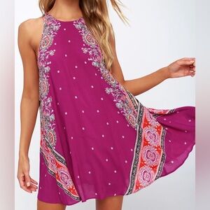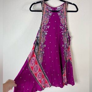 Free People Darjeeling Magenta Print Sleeveless Slip Dress Size Large