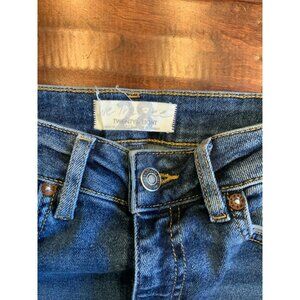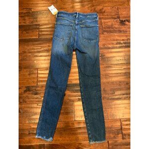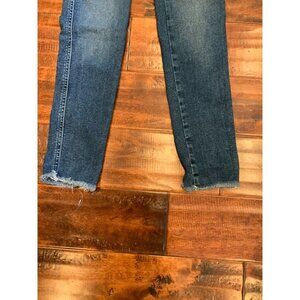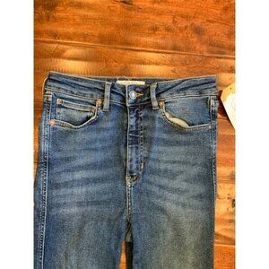 Free People cropped jeans with a frayed hem sz 28. Ideal for everyday style. Fit a little small for sz 28. Has stretch, but they aren’t SUPER stretchy.