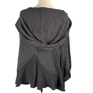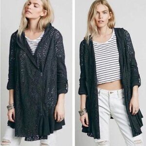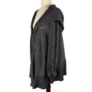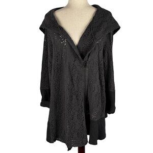 Free People Dark Gray Doiley-Knit Lace Oversized Hood Sweater Jacket Sz Small