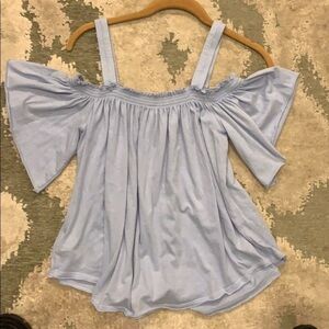 - Darling Off-the-Shoulder Baby Blue Shirt