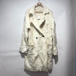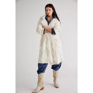 Free People David Cardigan Cardi Jacket Soft Faux Fur Longline Ivory L NWT $398