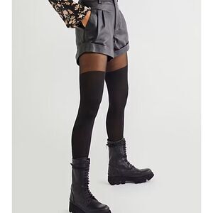 Free People Davis over the Knee Black & Heir Pointelle Tights Grey 2 pair New On