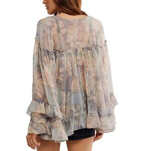 Free People Day Dreaming Ruffled Blouse Top Floral Printed XS NEW 281366