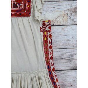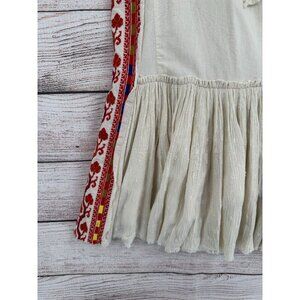 Item: Free People Day Glow Embroidered Mini Dress Women's Small Beige/Red Frayed Hem