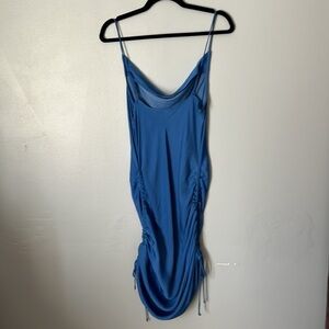 Shoulder to hem approximately 43” (adjusted with size ruching ties