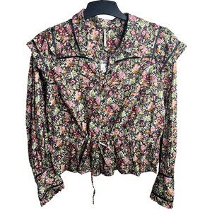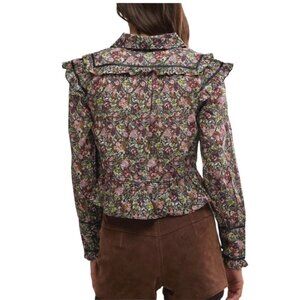 Free People Daybreak Floral Print Long Sleeve Shirt With Ruffle Details Large