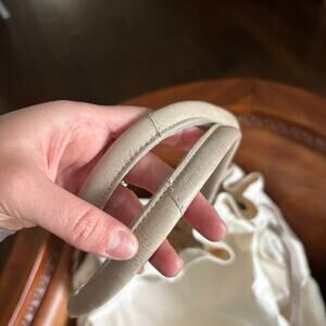 **some very slight discoloration in interior of the bag closest to the handles. See last photo. This almost doesn’t appear to be a flaw and I am not sure if it was manufactured that way. Otherwise in excellent pre owned condition