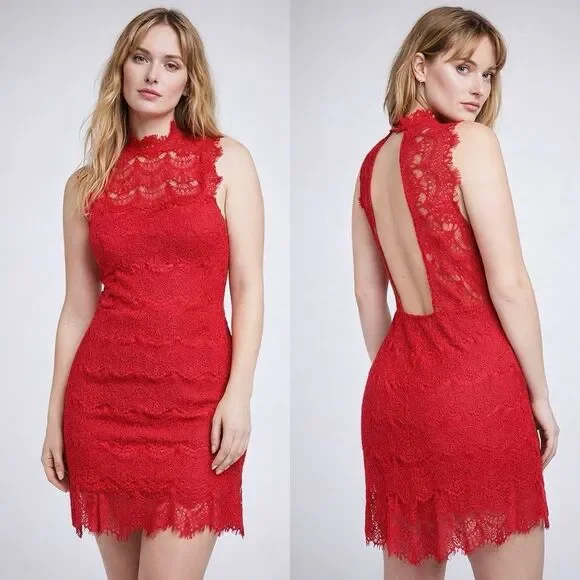 Free People Daydream Red Lace Dress NEW Large Open Back