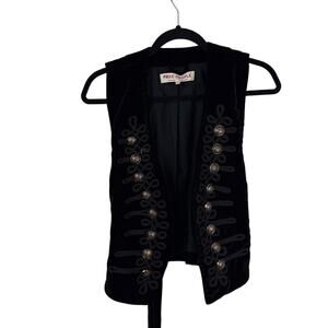 Free People Decorated Officer Vest Military Grunge Steampunk Rocker Black Size S