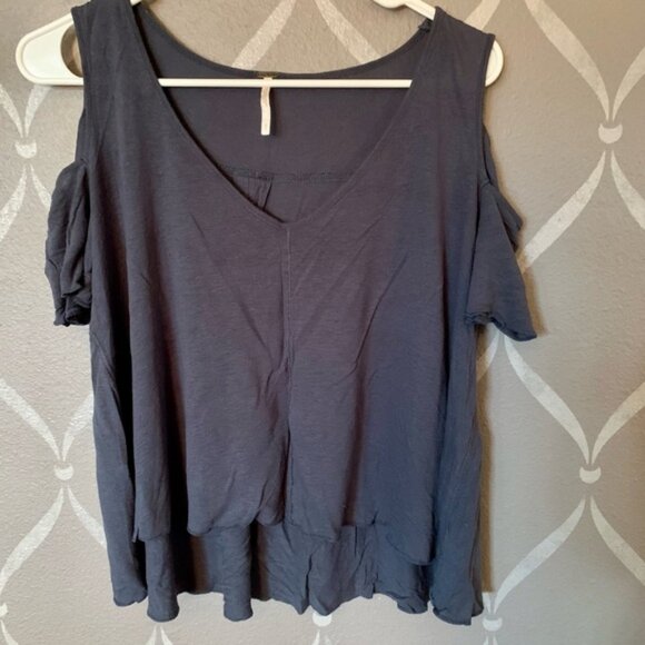 Free People Deep Blue Cold Shoulder Blouse
