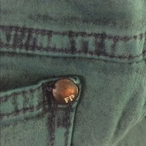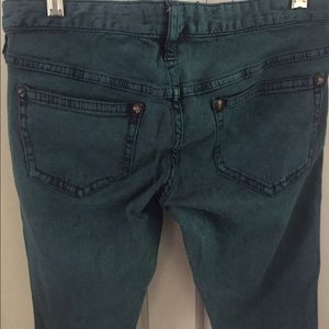 Beautiful deep green Free People stretch denim. Comfortable and looks great with a brown wedge!