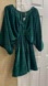 Luxurious deep green velvet mini dress. Features a V-neck and voluminous sleeves. Ideal for evening wear.